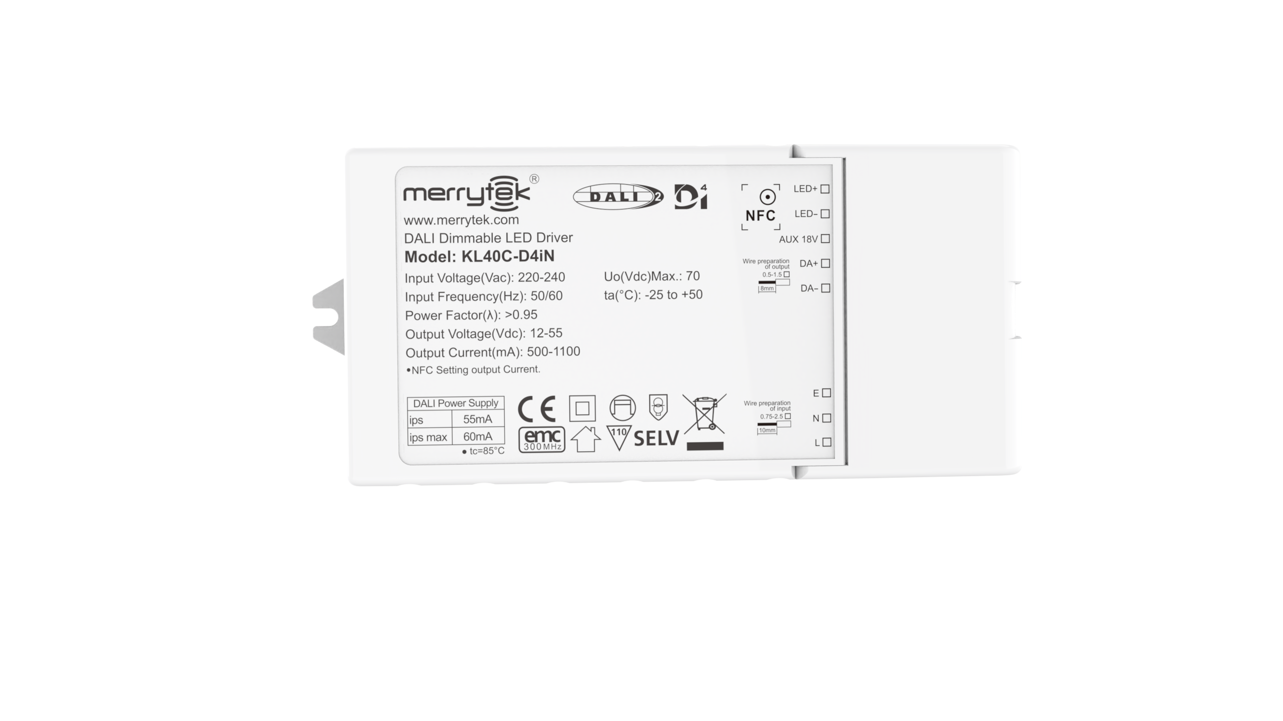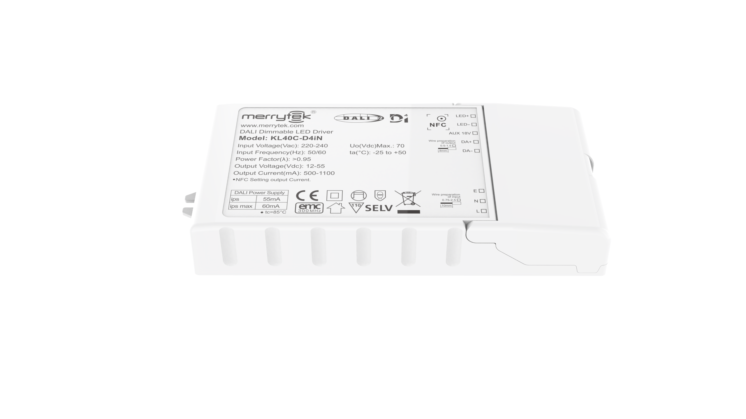 | ハイライト | 45W D4i dimmable LED controller,DALI2.0 dimmable LED driver,1100mA LED controller with warranty |