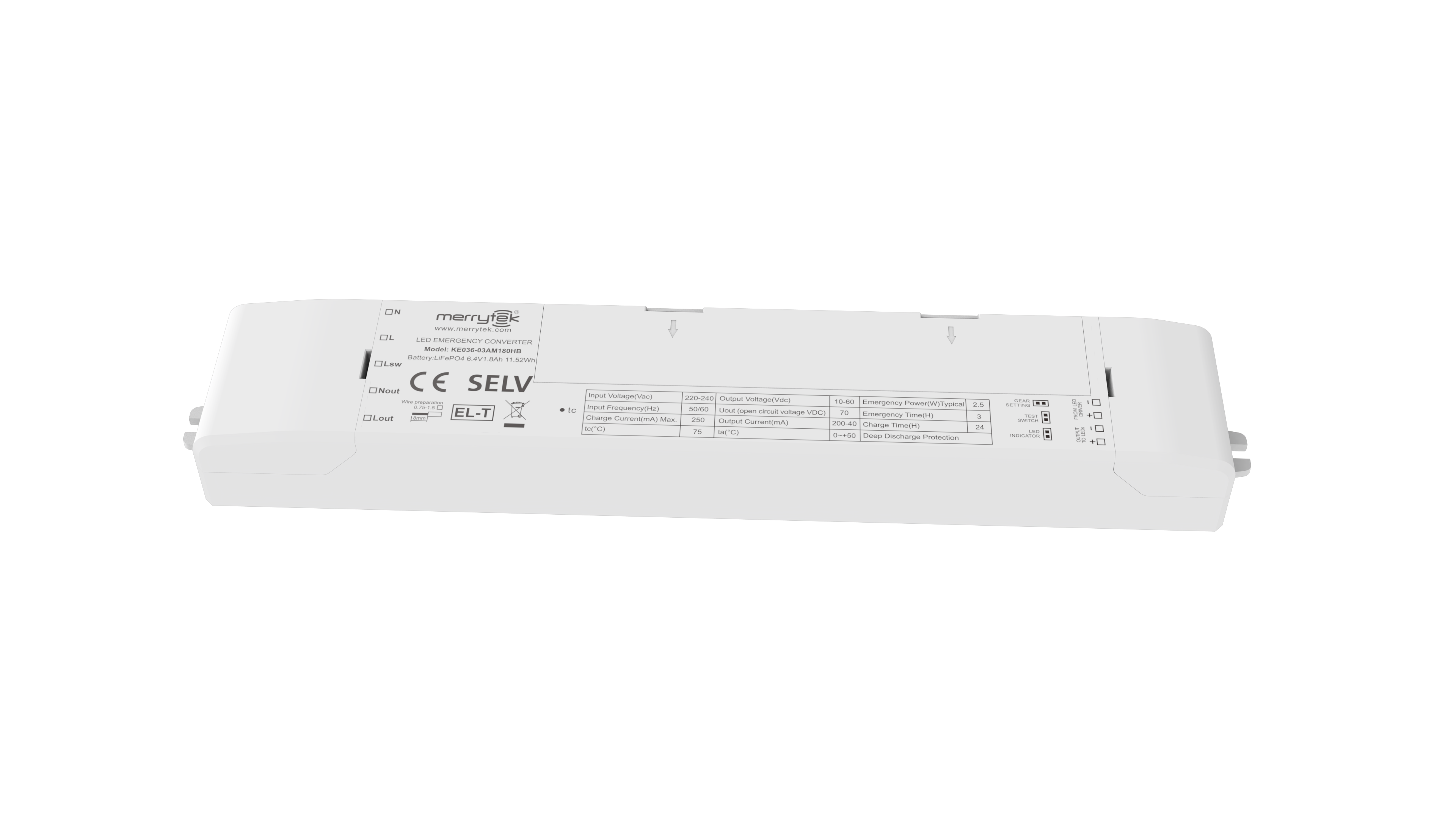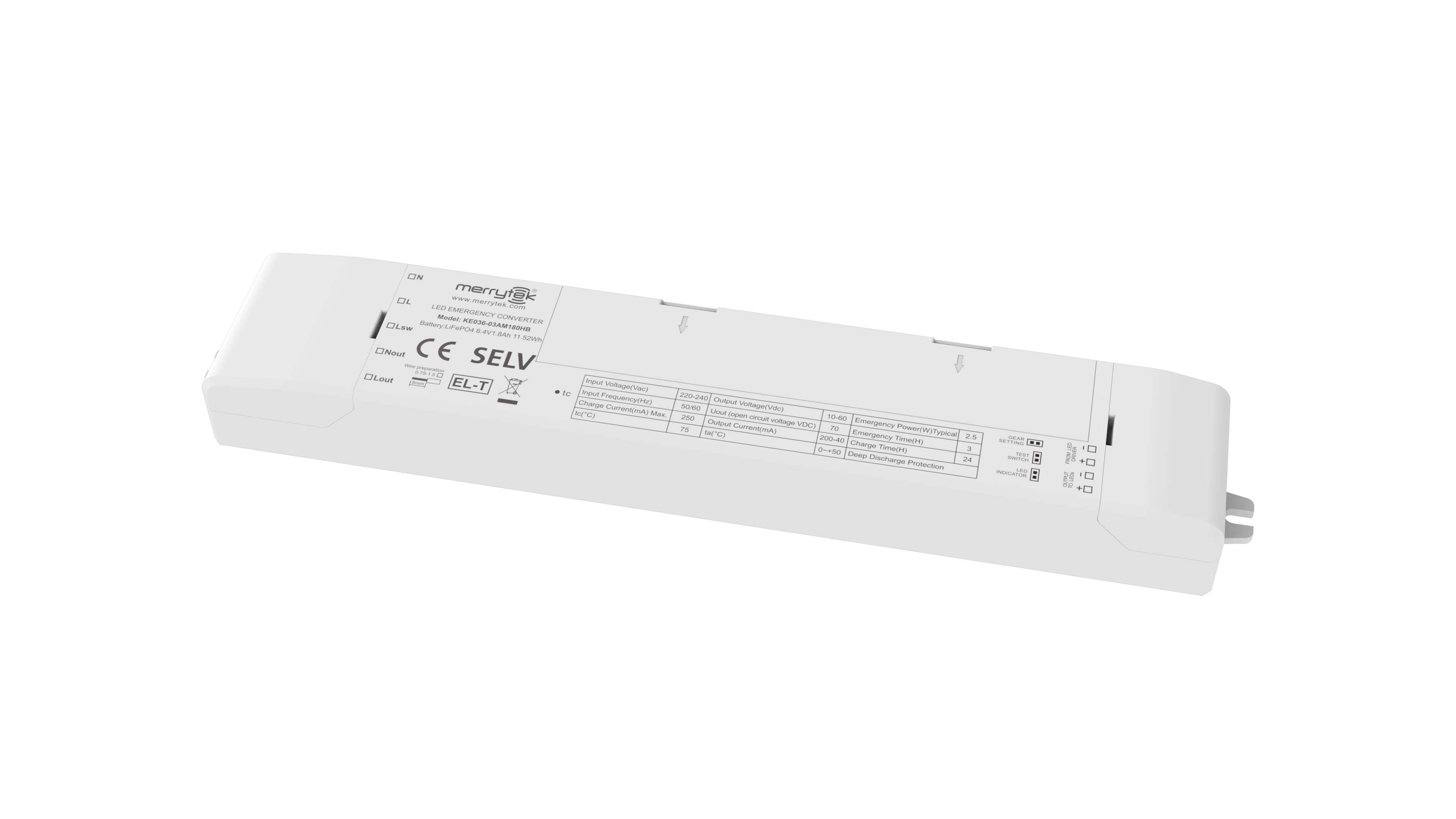 幅広い出力電圧範囲、5年間の保証付きのLifePO4バッテリー技術を特徴とする、定電力出力LED非常用電源。